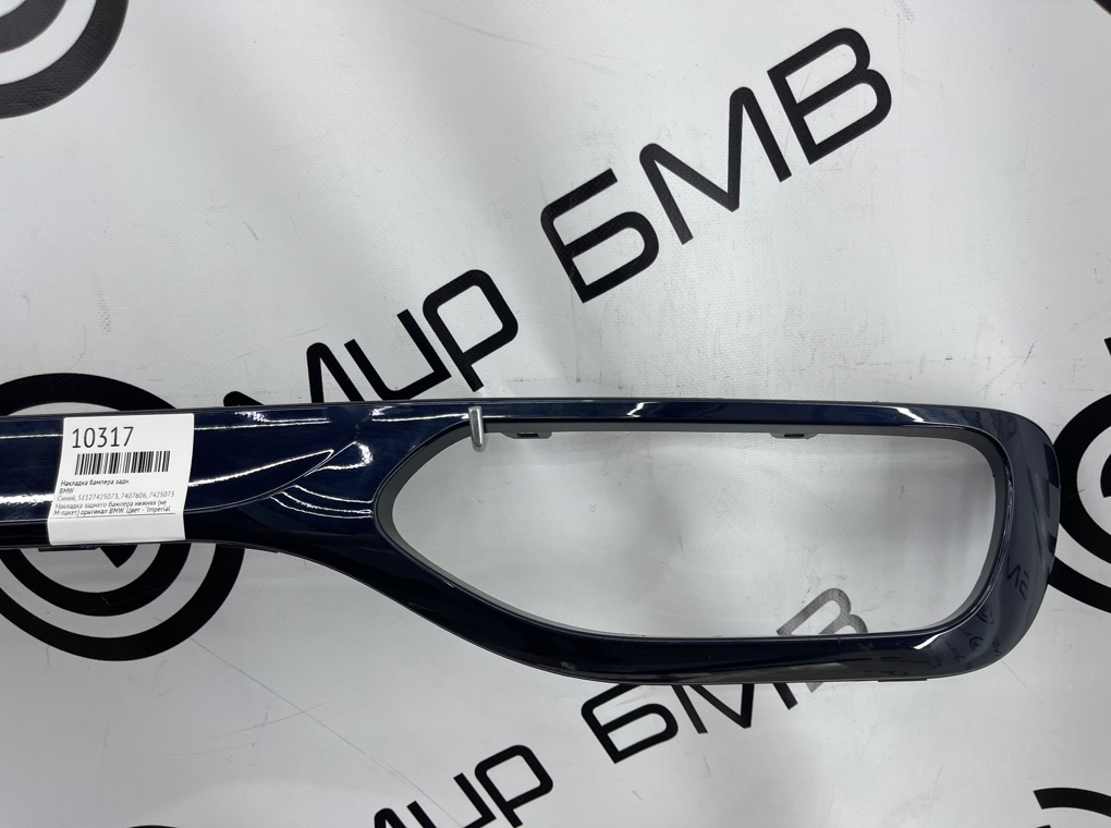 Накладка заднего бампера нижняя (не М-пакет) оригинал BMW.\nЦвет - Imperial Blau.\nЕсть небольшой дефект, см. фото