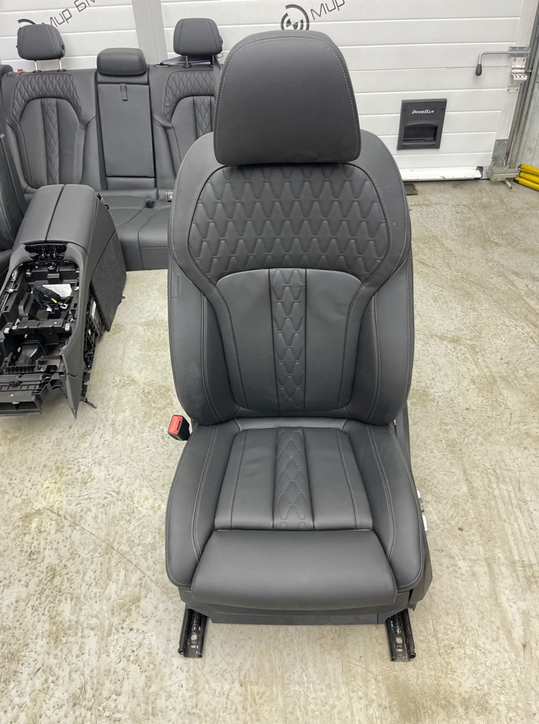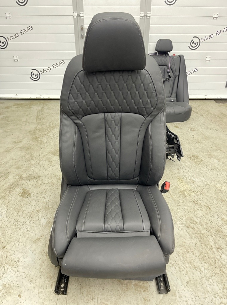 Комплект салона BMW X5/G05 .\nСалон комфорт BMW X5 G05 LCI Рестайлинг\nКод обивки: VASW / Кожа Merino черная.\nПередние кресла левое и правое , заднее кресло/диван , центральная панель, боковые накладки и т.д.\nПробег а/м : 12000 км\nСалон G05 комфорт