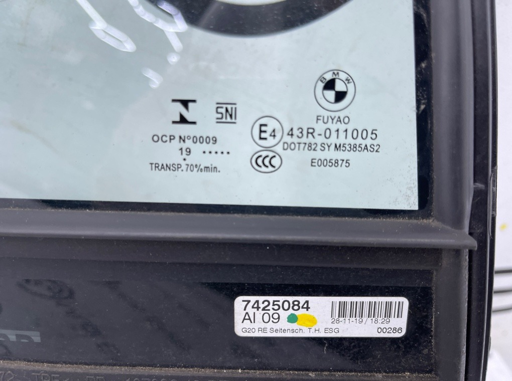 Стекло двери BMW 330e Saloon 2019 G20 B48B20B Задн. Прав.
