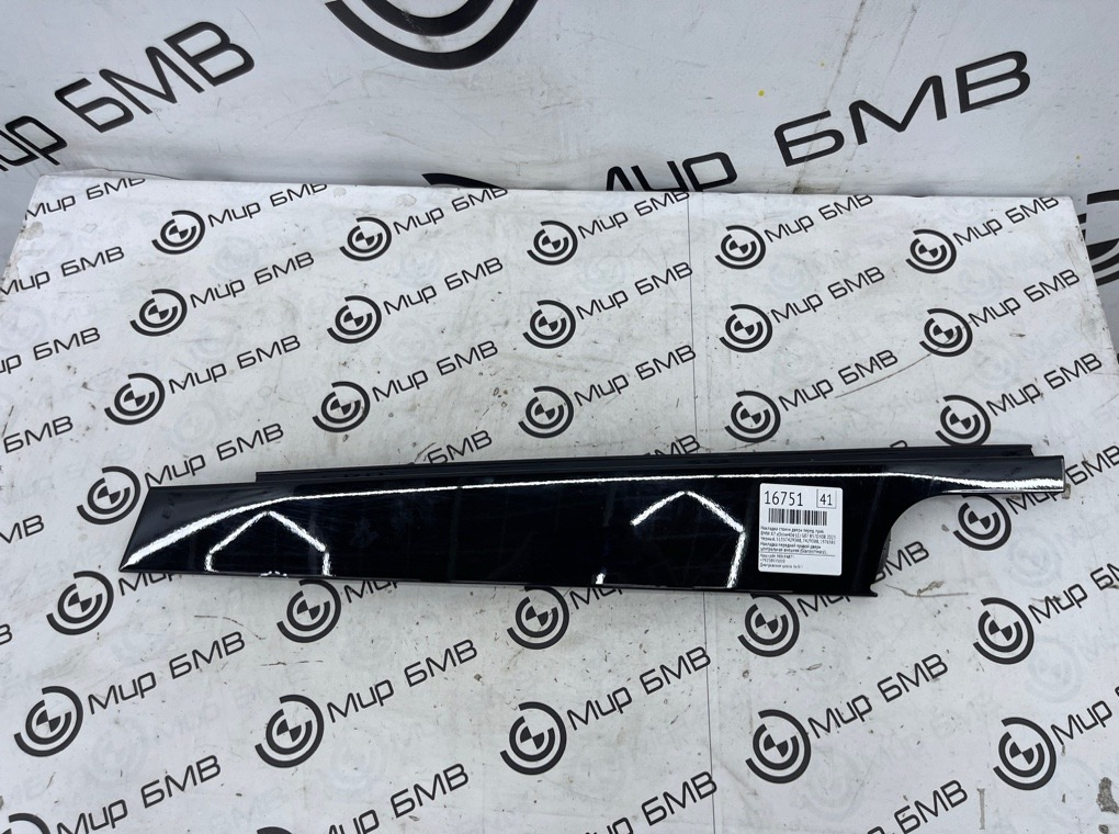 Накладка передней правой двери центральная внешняя (Glanzschwarz) , оригинал BMW.\nЕсть незначительный дефект , см. фото.