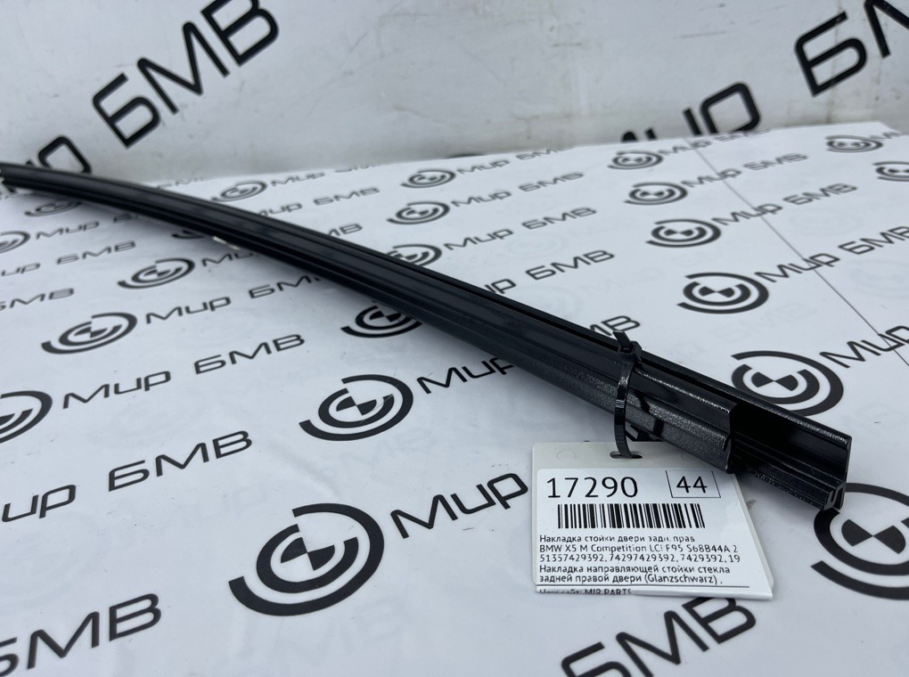 Накладка направляющей стойки стекла задней правой двери (Glanzschwarz) , оригинал BMW.\nЕсть дефект , см. фото.