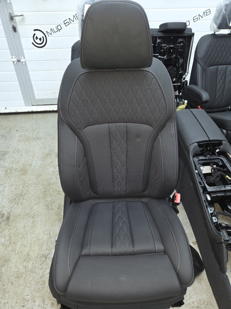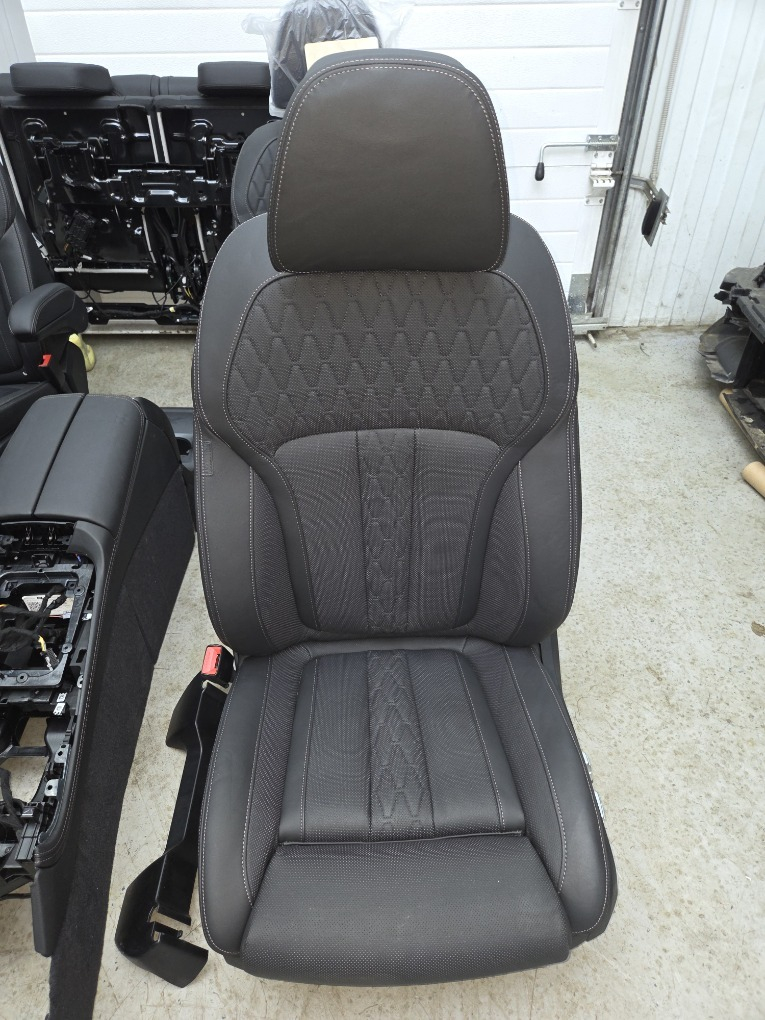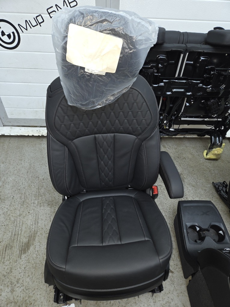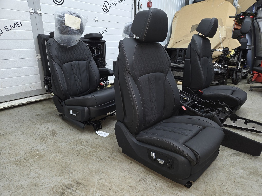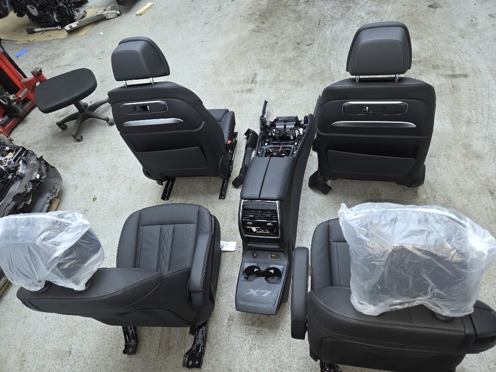 Комплект салона BMW X7/G07 LCI 08/2023 г.в. ; \nцентральная консоль, сиденья передние , задние и третий ряд в сборе , боковые накладки, оригинал BMW.\nКод обивки: VASW/Кожа Merino черная.\nЕсть незначительные дефекты , см. фото.