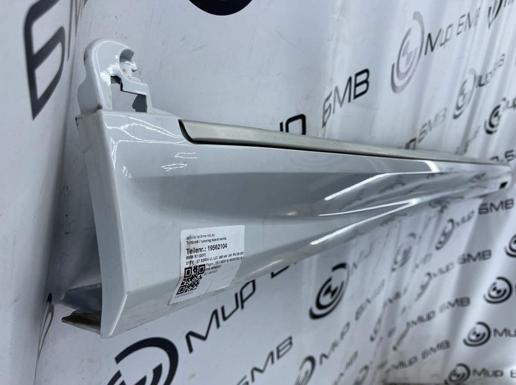 Накладка правого внешнего порога в сборе , оригинал BMW.\nКод цвета: A96 mineral-weiss metallic.\nЕсть незначительные дефекты , см. фото.