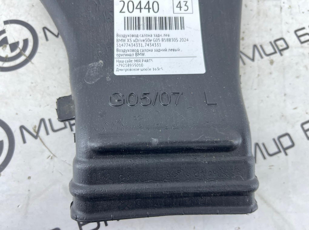 Воздуховод салона BMW X5 xDrive50e 2024 G05 B58B30S Задн. Лев.