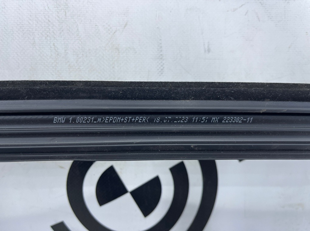 Уплотнитель стекла задней правый двери с молдингом (SW HGL) , оригинал BMW.\nЕсть незначительный дефект , см. фото.