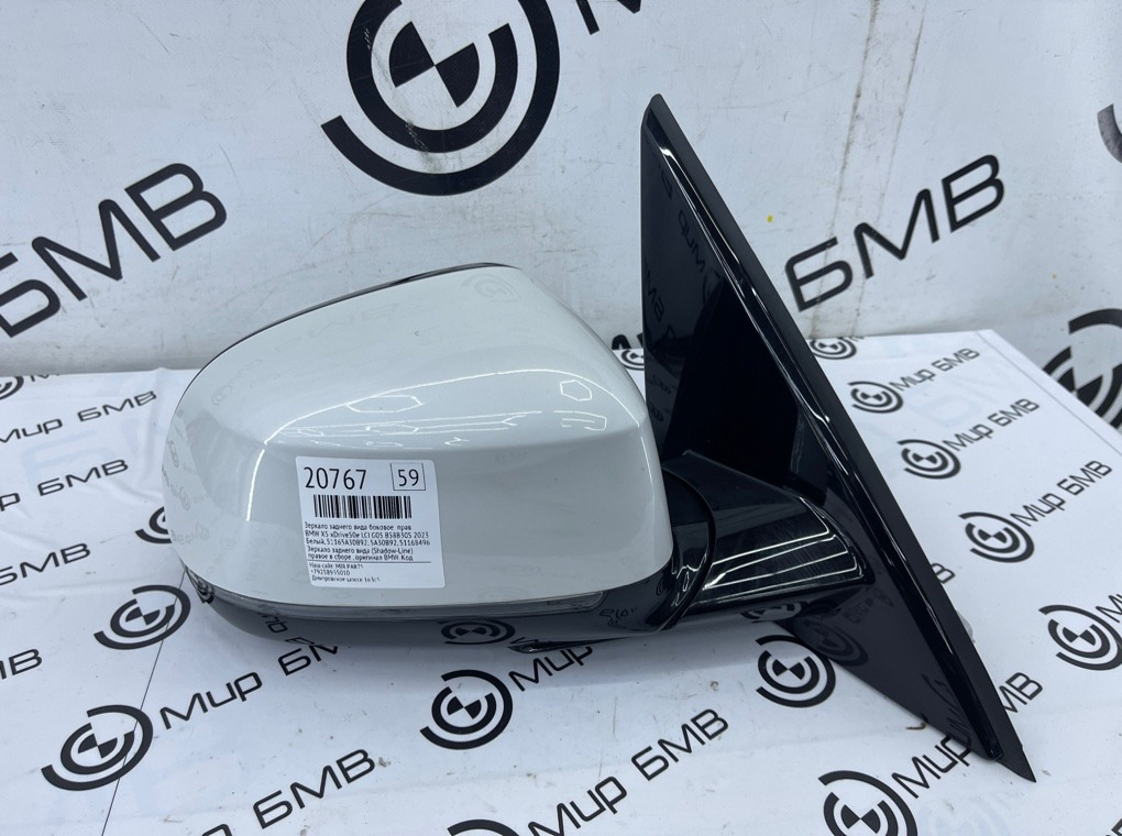 Зеркало заднего вида (Shadow-Line) правое в сборе , оригинал BMW.\nКод цвета: A96 mineral-weiss metallic.