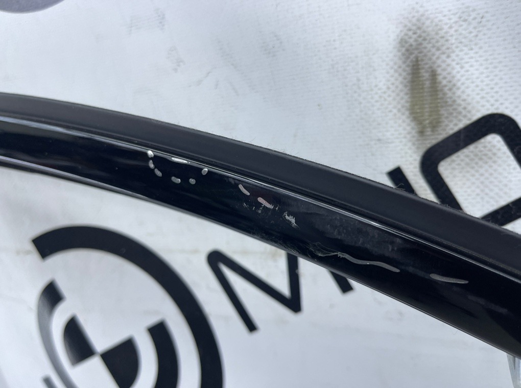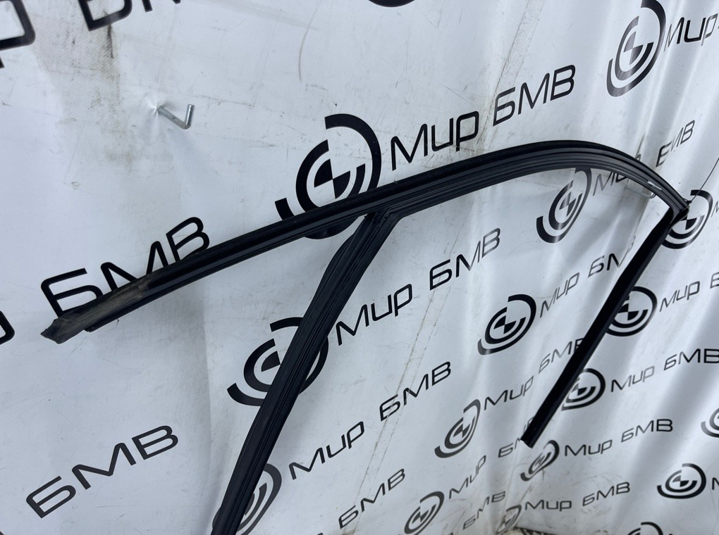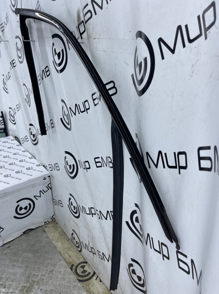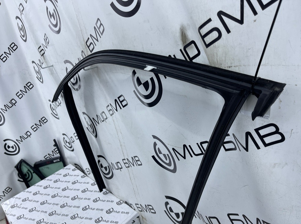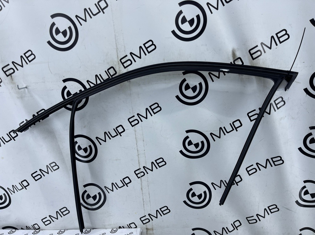 Уплотнитель стекла передней правой двери с молдингом (Glanzschwarz) в сборе , оригинал BMW.\nЕсть дефект , см. фото.
