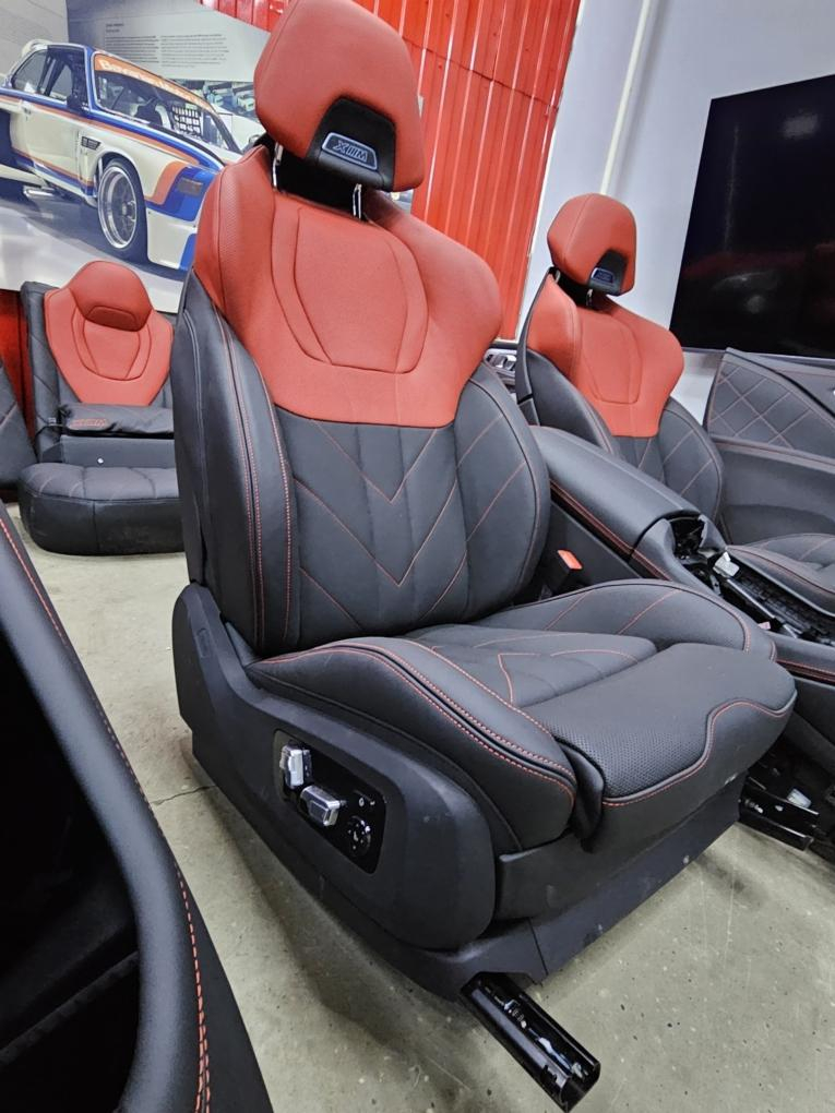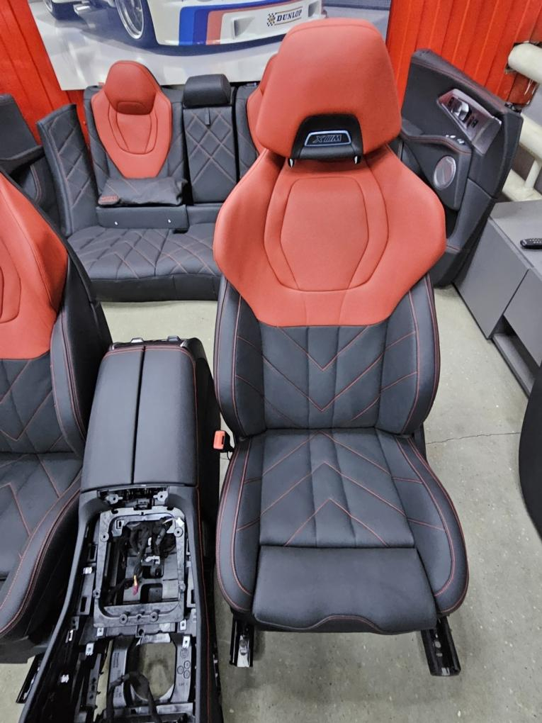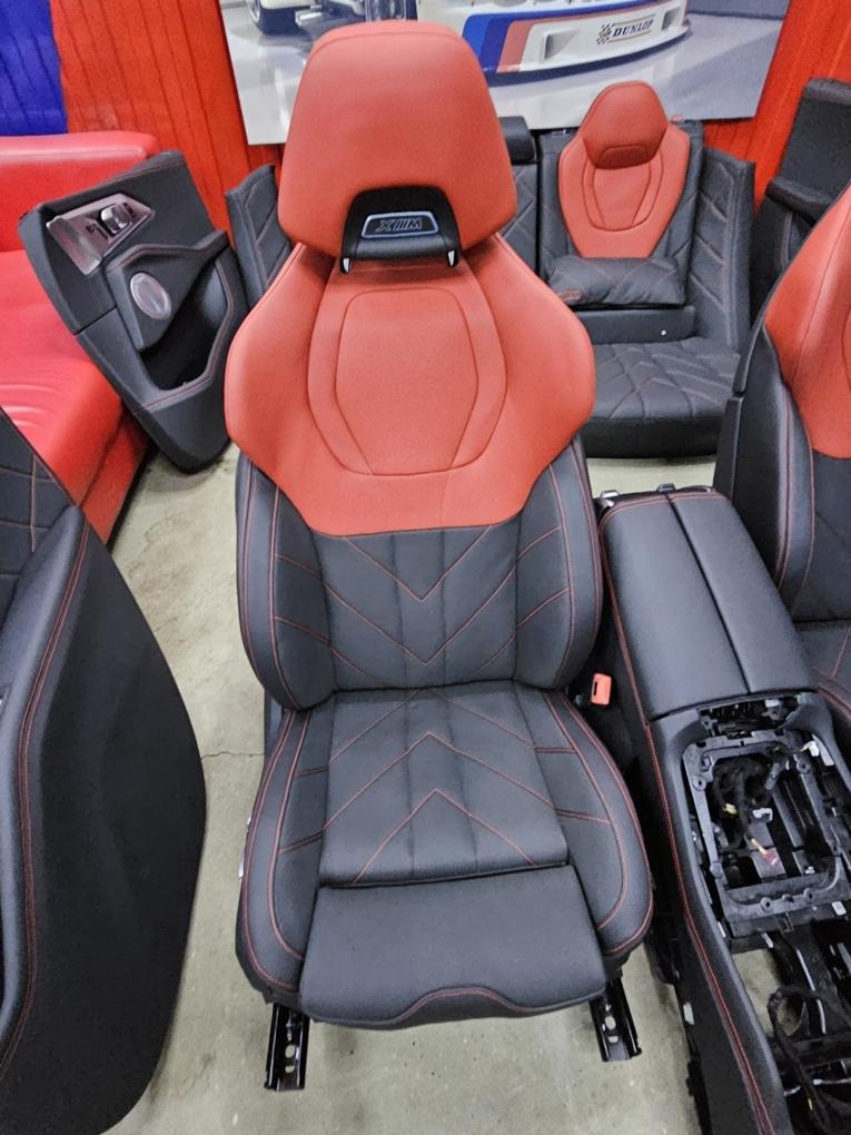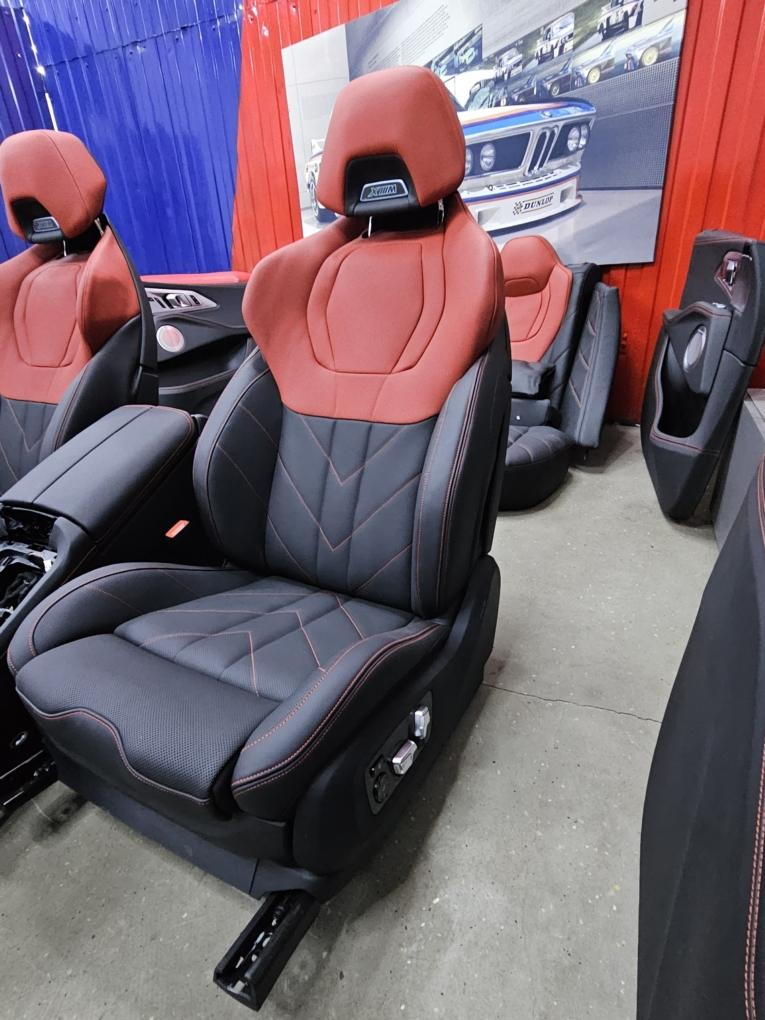 Комплект салона : сиденья передние и задние , центральная консоль, накладки дверные (карты) и т.д. , оригинал BMW XM Label 08.2023 г.в. \nКод обивки: VDHZ_Эксклюзив кожа Merino Fiona красный/черный.\nПробег минимальный! (тестовый авто).\n! В комплект НЕ входят накладки акустики Bowers !