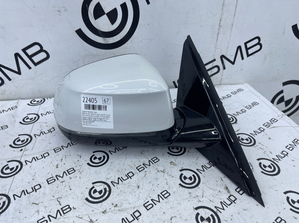 Зеркало заднего вида боковое (TV HC2 ) правое в сборе , оригинал BMW.\nКод цвета: A96 mineral-weiss metallic